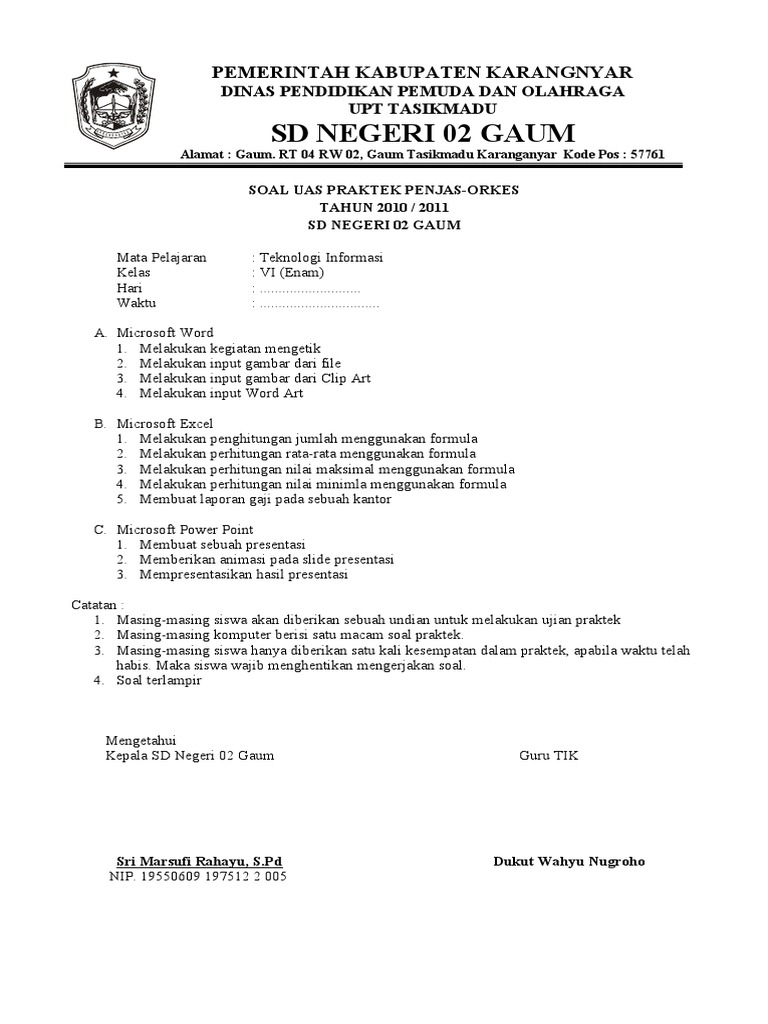 Ujian Praktek Kelas 6 from sdm11sby.sch.id Check spelling or type a new query. We did not find results for: Maybe you would like to learn more about one of these? Ujian praktek sd kelas 6 2020.